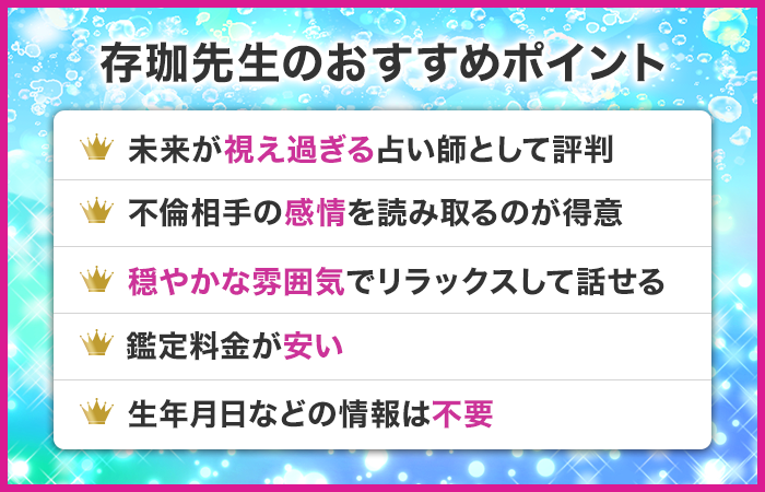 数々の不倫相談を手掛けてきた本物の占い師を厳選しているので、ぜひチェックしてみてください!