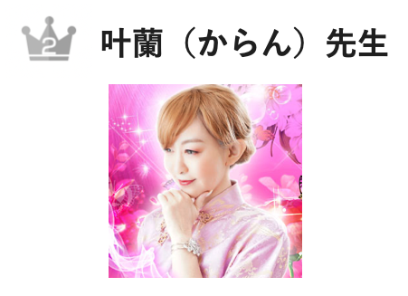 | 主な占術 | 霊感霊視・波動修正・高次元アクセス・ 遠隔ヒーリング・縁結び・祈祷・祈願・想念伝達・ エネルギー調整・霊感タロット・風水・易学・ カード | 霊感・霊視・過去視・波動修正・遠隔ヒーリング・ エンジェルオラクルカード・数秘術・エネルギー調整・ソウルメイト・チャクラ・チャネリング・ インナーチャイルド・カラー診断・オラクルカード・ 未来視・ヒーリング・コンサルテーション・ 霊感タロット・インスピレーションカード | 霊感・霊視・過去視・未来予知・未来透視・縁結び・祈願・祈祷・前世・来世・守護霊対話・故人との会話・波動修正・霊感タロット・タロット・スピリチュアルリーディング・四柱推命・エネルギー調整・オラクルカード・コンサルテーション・インスピレーションカード・リーディング・夢診断・開運気学・風水・家相・オリジナル占術 | 霊感霊視・霊聴・霊感タロット・透視・チャネリング・ 祈願祈祷・送念・思念伝達・波動修正・遠隔ヒーリング・ オラクルカード・ダウジング・四柱推命・九星気学・ 宿曜占星術・姓名判断・風水・夢占い・ オーラリーディング | 霊感・霊視・過去視・未来予知・前世・来世・思念伝達・想念伝達・波動修正・遠隔ヒーリング・タロット・エンジェルカード・オーラリーディング・スピリチュアルリーディング・エネルギー・祈祷・祈願・縁結び・サイキックリーディング・オラクルカード・ペットの気持ち | スピリチュアルリーディング・サードアイ・ 水晶リーディング・波動修正・縁結び・念送り・ 祈願祈祷・言霊・祈祷術 | 霊感霊視・チャネリング・霊聴(守護霊・ご先祖様・ 神仏)・霊感タロット・九星気学・数秘術・ダウジング・ 宿曜占星術・開運方法のお伝え | 透視・審神者(さにわ)能力・霊的交信・神降ろし・ 御神託・サイキック・守護霊交信・御霊降ろし・ 魂交信・霊聴・神霊交信・ツインソウル鑑定・縁結び・ 縁切り・波動修正・波動強化・魂の覚醒・生霊祓い・ 祈願祈祷・除霊・浄霊 | 霊感霊視・神秘カモワンタロットリーディング・ 霊感タロットリーディング・オーラリーディング・ エンジェルカードリーディング・開運風水・夢占い・ 写真鑑定(メール鑑定やコンタクトから画像送信) (手相・オーラリーディング・ペットの気持ちなどで必須) | アルミネタロット・未来鑑定・スピリチュアル・ トラウマの癒し | 霊感・霊視・透視・守護霊対話・生霊呼び出し・ 霊聴・送念・霊感タロット・ライトヒーリング・ ファーストインスピレーションタロット・姓名判断・ 九星気学・夢占い | ヴィジョンリーディング・チャネリング・波動読み・ スピリチュアルタロット・ダウジング・縁結び祈願・ 波動修正・波動強化 | 霊感・霊視・エンパス・チャネリング・ツインレイ・ 未来透視・霊感タロット・縁結び・ソウルメイト・ スピリチュアルリーディング・思念伝達・想念伝達・ 波動修正・遠隔ヒーリング・オーラリーディング |